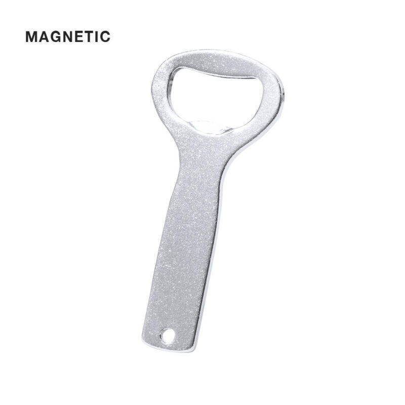 Sencillo y elegante abridor fabricado en aluminio y con imán en el mango. Presentación individual en bolsa autocierre.