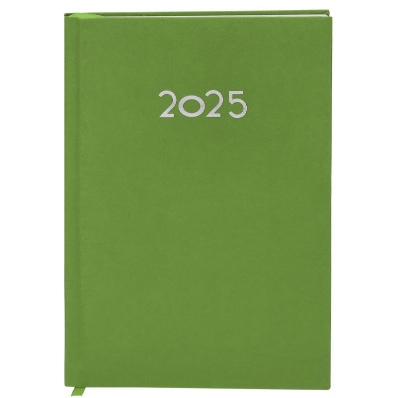 Agenda de tamaño A5 acabada en suave PU. Con cubiertas rígidas y acolchadas. Incluye caja kraft de presentación.Diseño página día y marcapáginas de tela. En 2 idiomas: castellano e inglés.