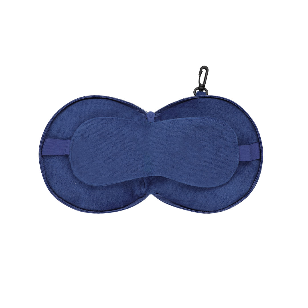 Almohadilla con Antifaz ideal para viajes fabricada en suave material RPET.Incluye antifaz interior adaptable mediante dos gomas elásticas a juego para mayor comodidad y descanso durante el viaje. Cuenta con un esponjoso reposacabezas plegable con cierre de cremallera, lo que facilita su almacenamiento. Además, dispone de práctico bolsillo exterior y mosquetón de plástico en color negro, que permite transportarlo de cómoda.Este accesorio combina funcionalidad, diseño compacto y siendo perfecto sus viajes.El material RPET se elabora a partir de plástico reciclado, para así fomentar la reutilización de residuos plásticos y ayudar a la sostenibilidad del planeta.