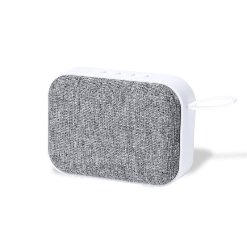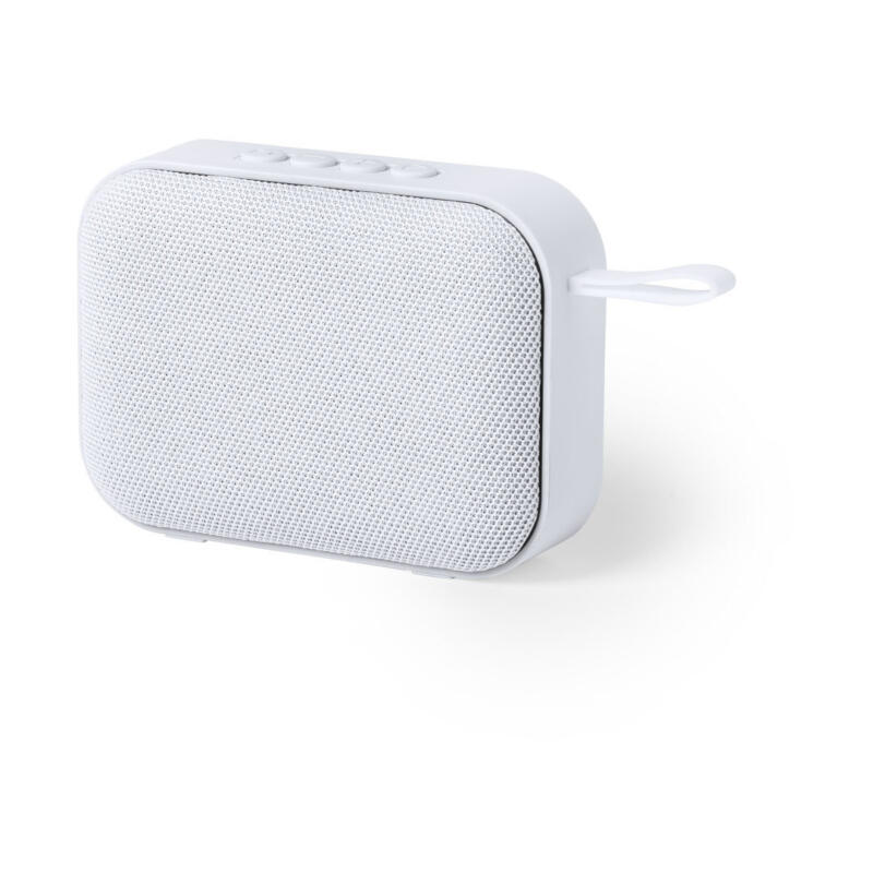 Altavoz de conexión Bluetooth 5.0 de diseño bicolor, con rejilla de poliéster y asa de transporte a juego en silicona. Ofrece 3W de potencia, tiene función de manos libres y función radio FM. Reproducción mediante USB, ranura para tarjetas micro SD de hasta 32GB de capacidad y entrada auxiliar de línea mediante conexión jack de 3,5mm, con base antideslizante. Compatible con iOS y Android, incluye cable de carga micro USB y además está disponible en una extensa gama de colores. Presentado en atractiva caja de diseño.