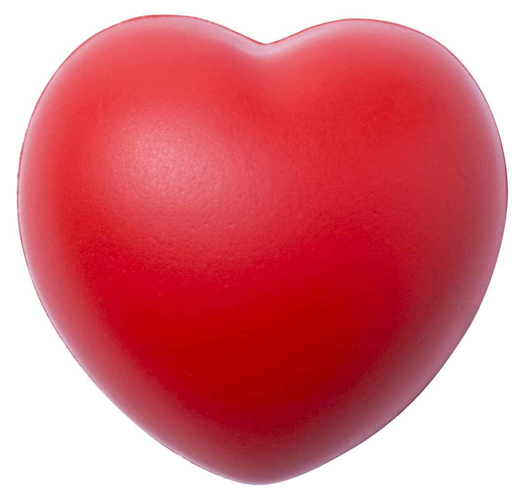 Corazón antiestrés en vivos colores y suave cuerpo con acolchado de PU brillante.