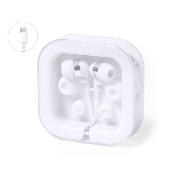 Prácticos y confortables auriculares intraurales con conexión Tipo C. En acabado blanco y con detalles en cromado, incluidos 3 pares de almohadillas para adaptarse a todos los oídos. Presentados en práctico estuche a juego con enrollacables y tapa transparente.