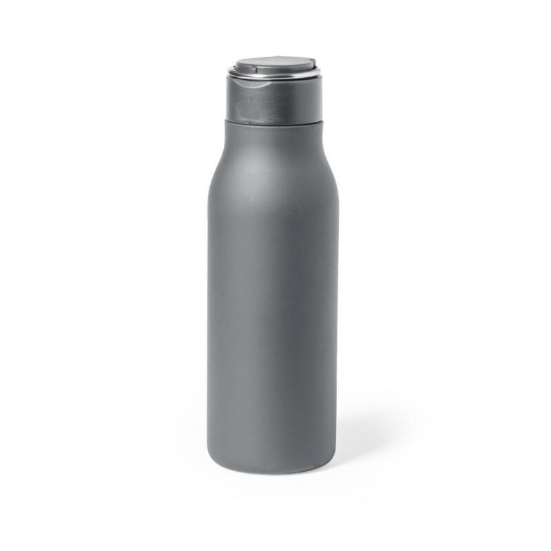 Bidón de 600 ml de capacidad, fabricado en acero inox. Tapón a rosca a juego libre de BPA, con anilla de transporte integrada, plegable y de acabado cromado. Disponible en variada gama de colores satinados y presentado en caja individual de diseño kraft.Disponible manual de instrucciones en español e inglés.