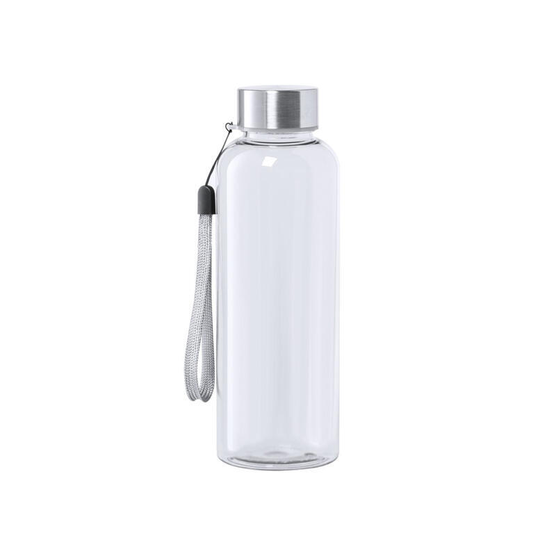 Bidón de 500ml de capacidad. Libre de BPA, con cuerpo fabricado en tritán transparente y de alta resistencia al calor. Tapón a rosca en acero inox, con cordón de transporte. Disponible en variada gama de colores.