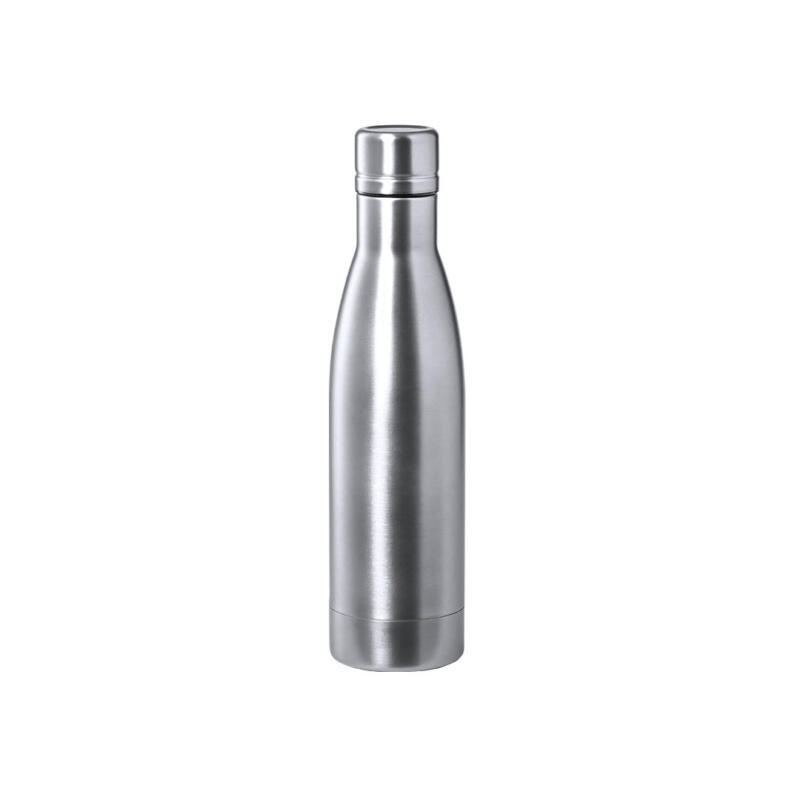 Bidón térmico de acero inox con doble capa de 500ml. Fabricado con doble capa y aislamiento de cobre al vacío, permitiendo mantener el calor y el frío durante un tiempo prolongado, llegando a las 12 y 48 horas respectivamente. Con tapón a rosca para un sellado perfecto. En acabado metalizado y disponible en amplia gama de colores. Presentado en atractiva caja de diseño.