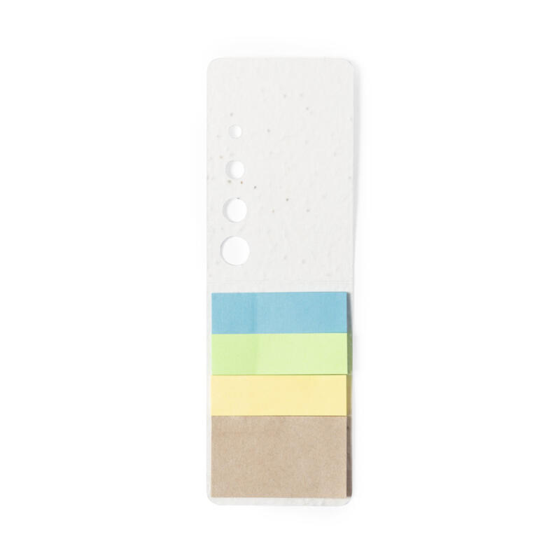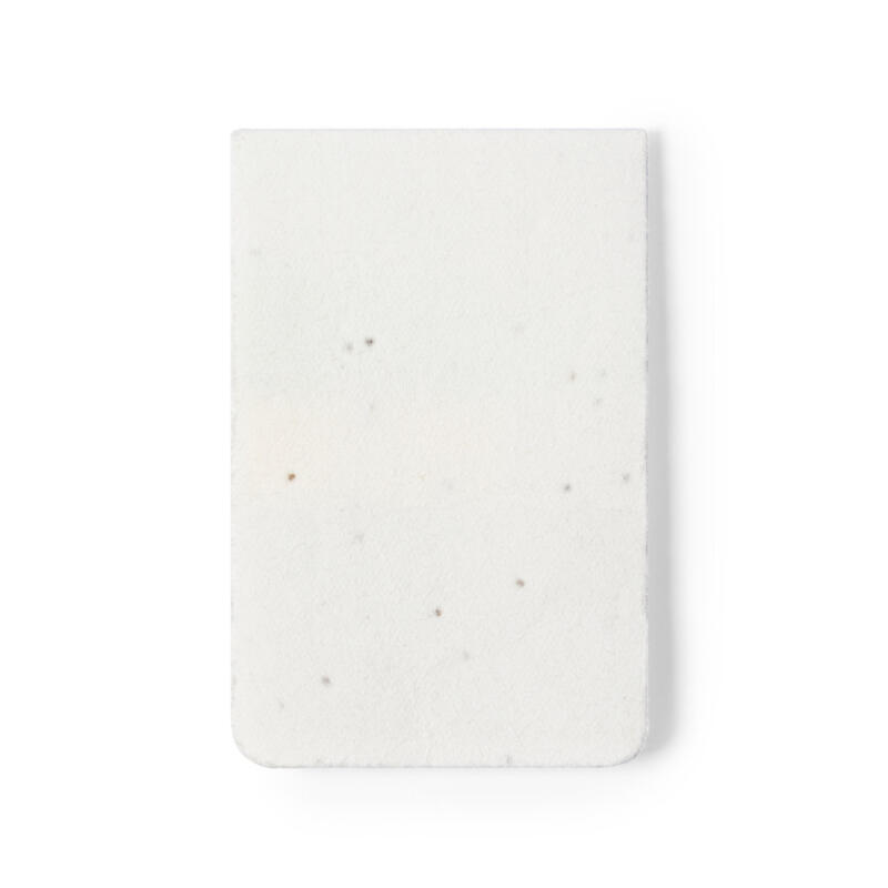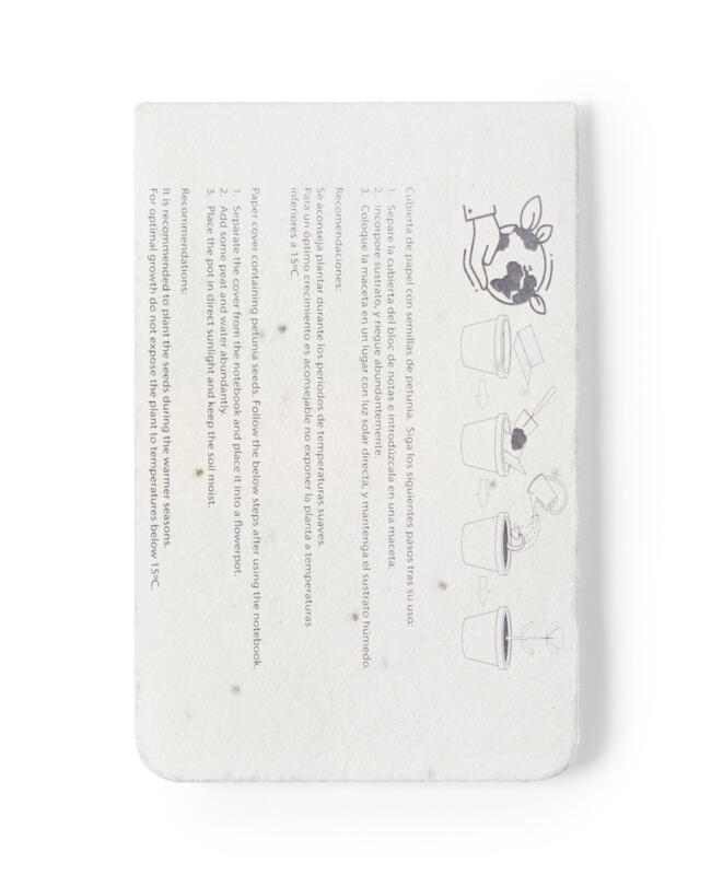 Bloc de notas de línea nature, con cubiertas fabricadas en papel semilla, reciclable y degradable. Incluye semillas de petunia en ambas cubiertas, convirtiéndolo así en papel plantable al final de su vida útil. Interior con 10 notas adhesivas medianas y 30 mininotas adhesivas en varios colores. Flores en colores surtidos, con instrucciones de plantado en la cubierta trasera y presentado en bolsa individual de papel reciclado.