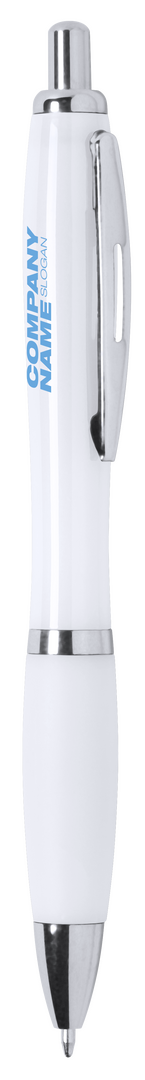 Bolígrafo antibacteriano. Fabricado en material ABS, especialmente tratado para inhibir y prevenir el crecimiento bacteriano sobre el cuerpo del bolígrafo gracias a la tecnología nano silver, un tratamiento especial realizado con iones de plata. De mecanismo pulsador, con accesorios en color plateado y cuerpo en color blanco. Clip troquelado y cómoda empuñadura, en tinta azul. Artículo de acuerdo al estándar ISO 22196:2011, sobre la medida de la actividad antibacteriana en plásticos y otras superficies no porosas.