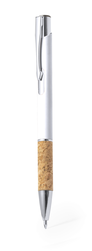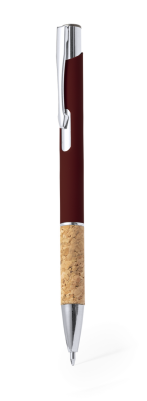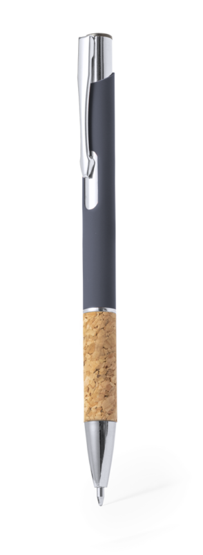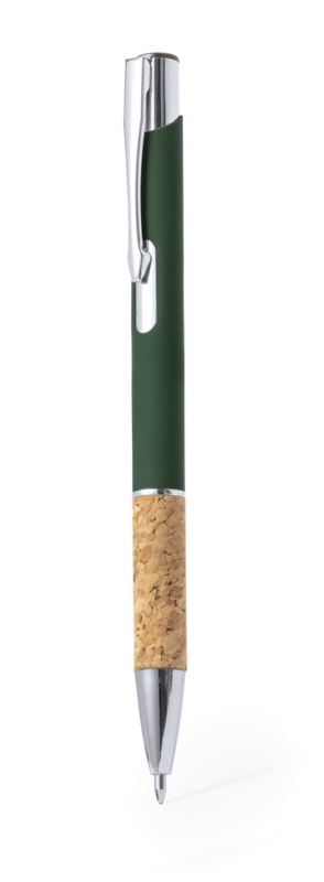 Elegante bolígrafo de línea nature y mecanismo pulsador. Cuerpo en resistente aluminio de acabado goma y empuñadura en corcho, con la caña en una amplia gama de distintivos colores. Clip metálico, con pulsador retráctil y en tinta azul. Presentado en bolsa individual reciclada.Elaborado con elementos vegetales para así fomentar la utilización de materias primas naturales y reducir las emisiones contaminantes.