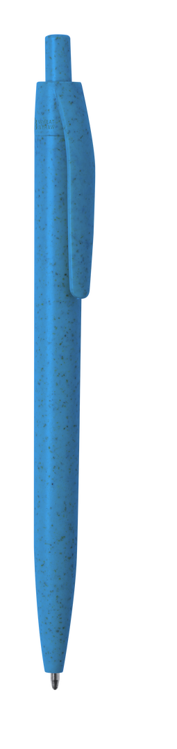 Bolígrafo con mecanismo pulsador de línea nature. Cuerpo y accesorios en caña de trigo, para así fomentar la utilización de materias primas naturales y reducir las emisiones contaminantes. Tinta azul.