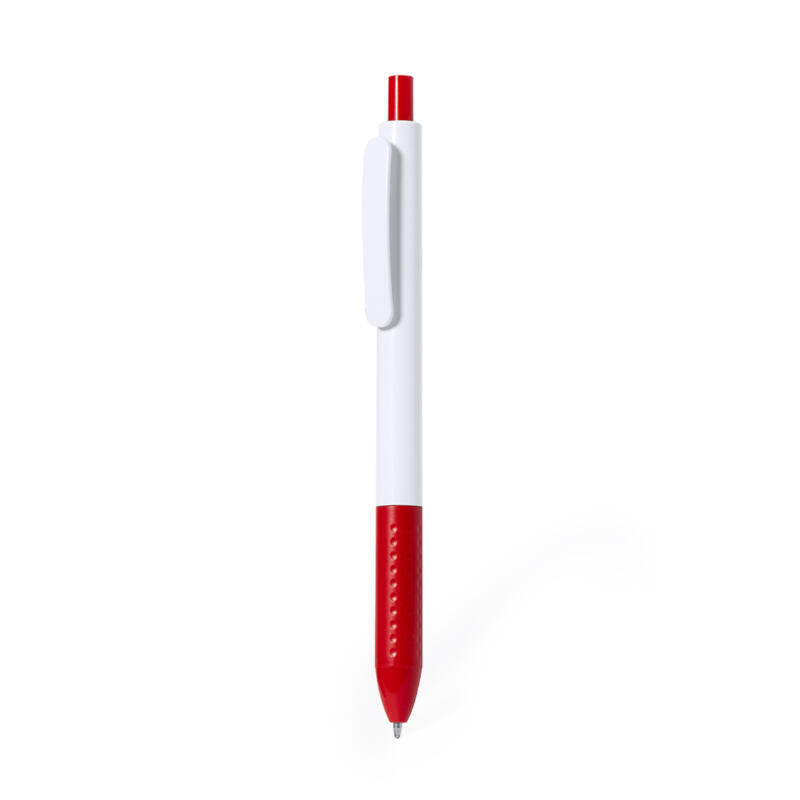 Bolígrafo de mecanismo pulsador en resistente ABS. Fabricado en elegante combinación de caña y clip de tono blanco. Con pulsador y empuñadura disponibles en una vibrante variedad de colores. En tinta azul.