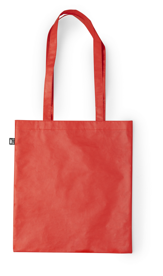 Bolsa de línea nature en material RPET, elaborado a partir de plástico reciclado, para así fomentar la reutilización de residuos plásticos y ayudar a la sostenibilidad del planeta. En material laminado de 100 g/m2 de acabado mate, con asas largas y costuras reforzadas. Resistencia de hasta 5 kg de peso. Disponible en extensa gama de colores con etiqueta distintivo RPET.