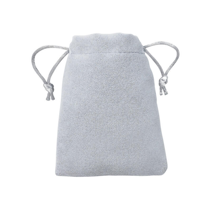 Bolsita de antelina con cuerpo de suave acabado en vivos y variados colores. Con cierre de cinta a juego.