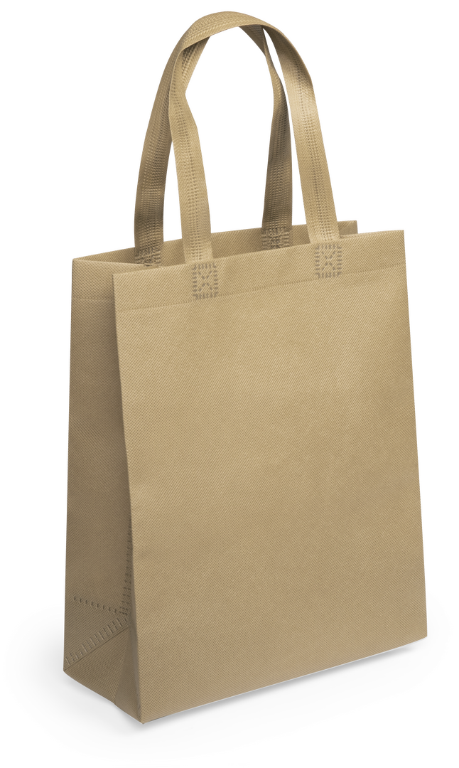 COMPRAR CON IMPRESIÓNBolsa reutilizable de inspiración nature en non-woven grueso de 90g/m2. Tamaño 25×31+11 cm, de acabado cosido y con asas cortas reforzadas de 27 cm. Resistencia de hasta 7 kg de peso.