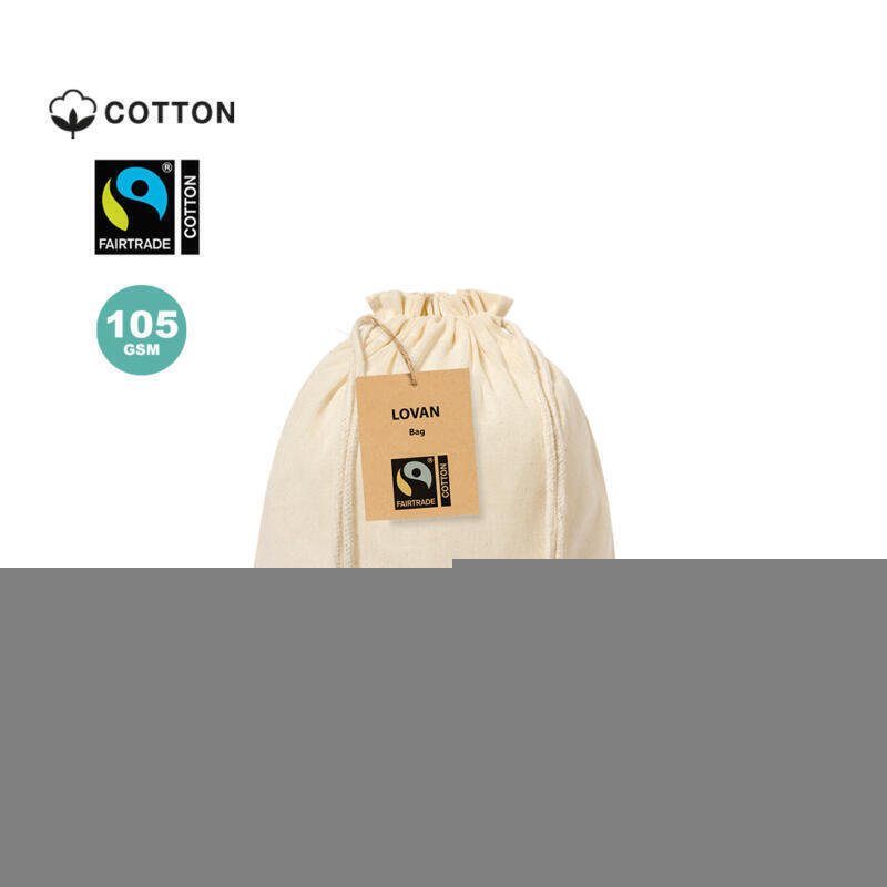 Bolsa de línea nature, fabricada en 100% algodón de 105g/m2 de color natural. Con certificación Fairtrade (Comercio Justo) un sistema comercial solidario y alternativo al convencional que persigue el desarrollo de los pueblos y la lucha contra la pobreza. De acabado cosido, con cordón de autocierre. Incluida etiqueta Fairtrade y etiqueta con logotipo en cartón reciclado.