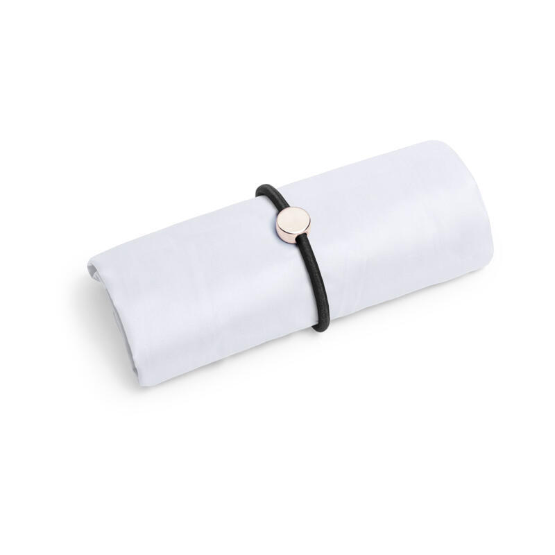Bolsa plegable en divertidos y variados colores. De suave poliéster 190T, con elástico para plegado y de acabado cosido.