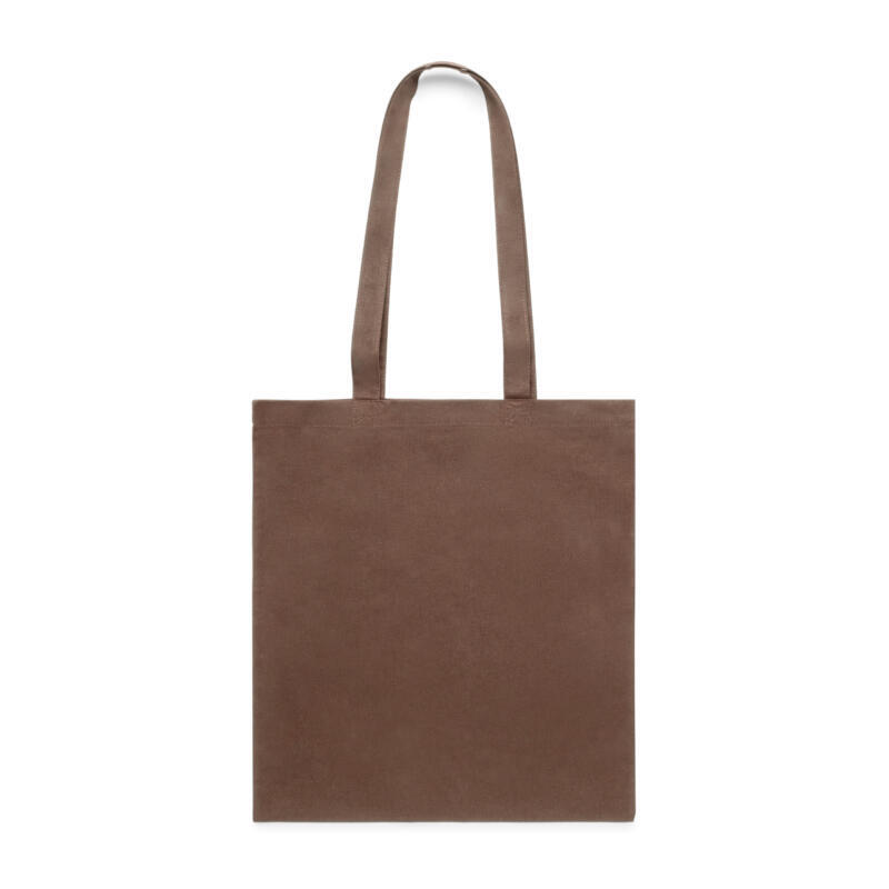 Bolsa fabricada en algodón 100% de 240g/m2. De acabado cosido y asas largas reforzadas (70 x 2,5 cm). Disponible en variada gama de colores. Resistencia hasta 10 kg de peso.