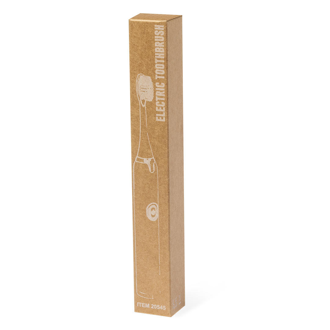 Práctico cepillo de dientes portátil eléctrico. Eficiente limpieza gracias a su función de vibración y a sus agradables cerdas. Funciona con 1 pilas AA (no incluida) introducidas por la base. En color blanco y plateado, presentado en una caja de diseño kraft.