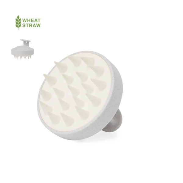 Cepillo masajeador para cuero cabelludo fabricado en caña de trigo. Eficiente emulsionador de champú para masajear placenteramente el cabello estimulando los capilares optimizando la limpieza con sus suaves púas en suave silicona. Presentado en caja individual de diseño kraft.La caña de trigo fomenta la utilización de materias primas naturales, reduciendo así las emisiones contaminantes.