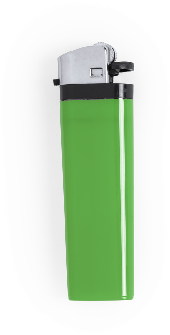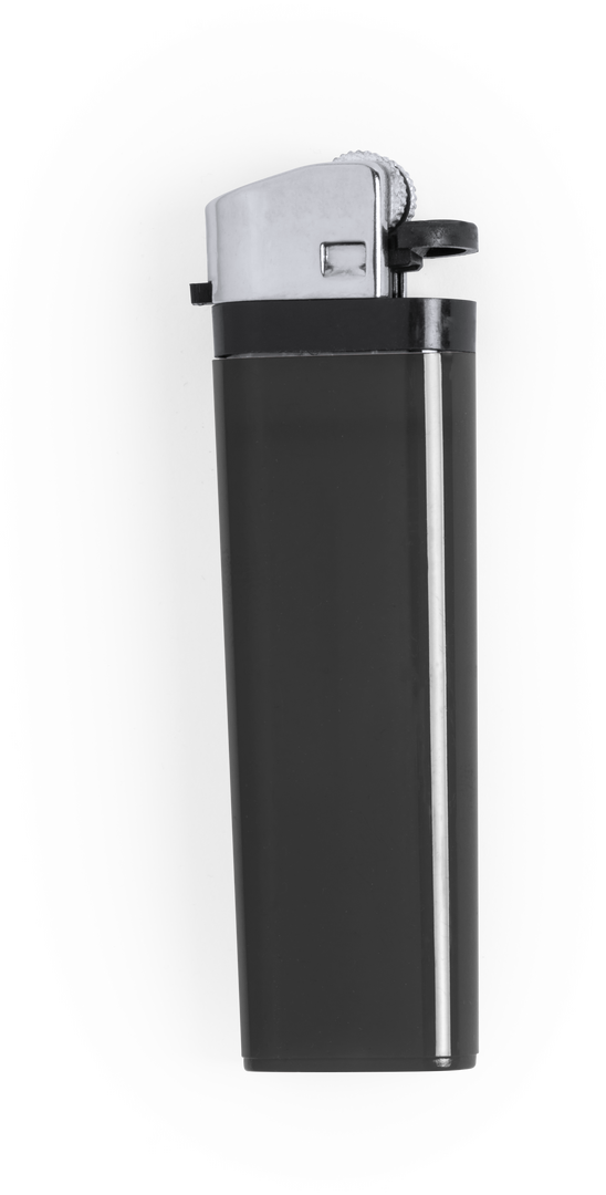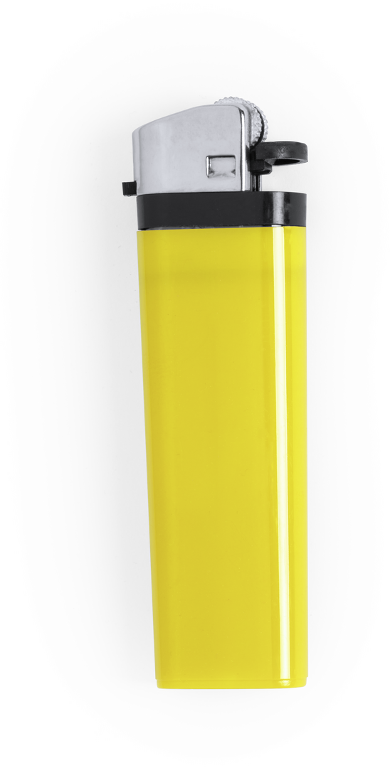 Encendedor a gas de mecanismo de piedra. Con protección infantil y regulador de llama. Disponible en variada gama de colores de acabado sólido. Servidos en bandejas de 50 unidades del mismo color.