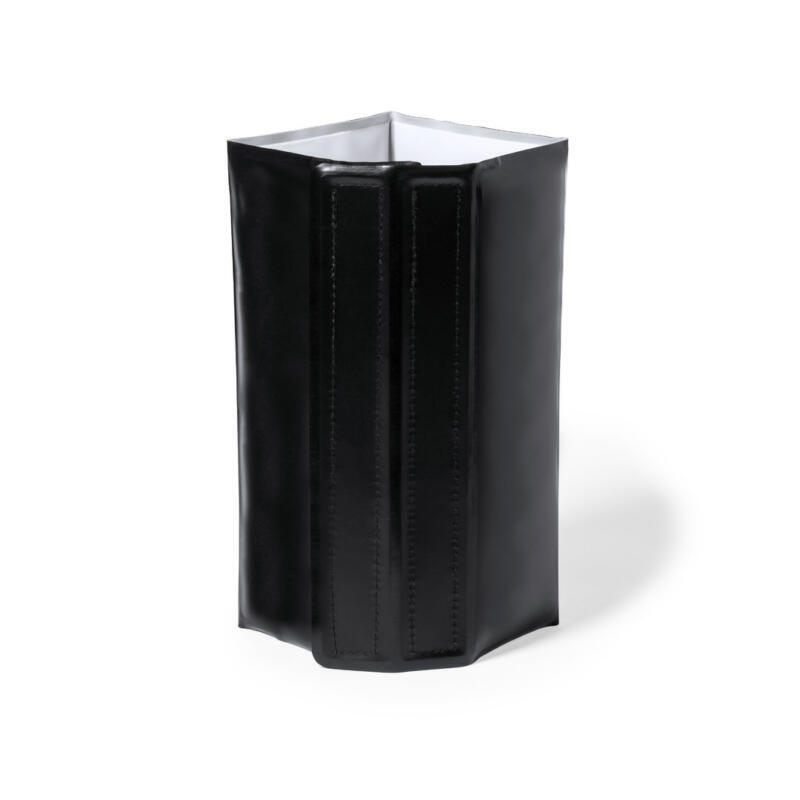 Enfriador con cierre ajustable de velcro, líquido refrigerante interior y fabricado en PVC negro mate.
