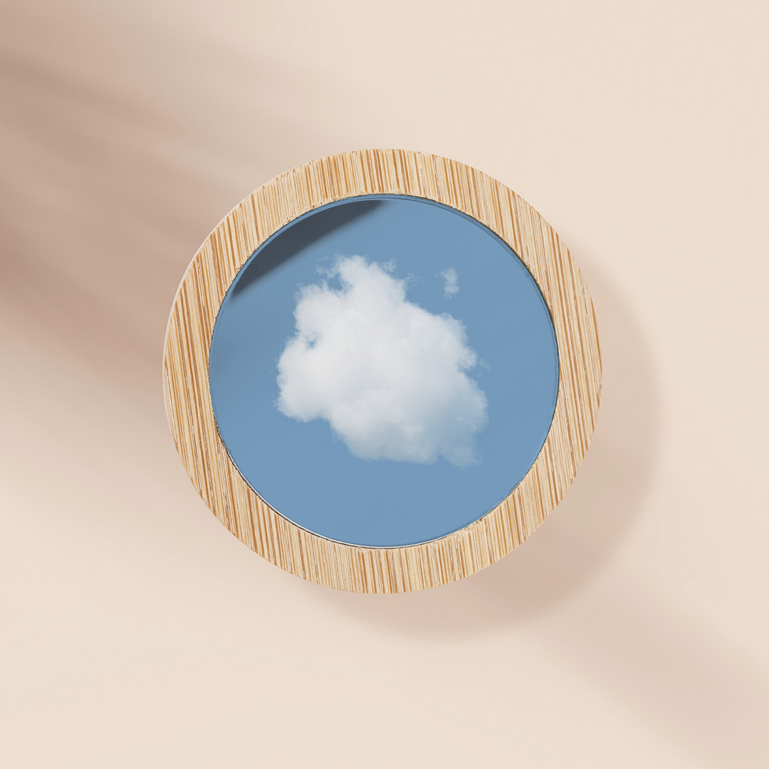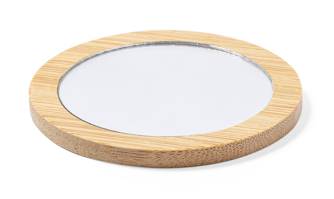 Espejo 1X de línea nature fabricado en bambú. Presentado en caja individual de diseño eco.