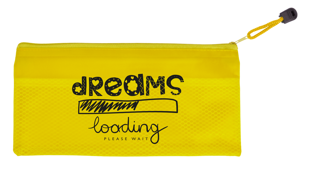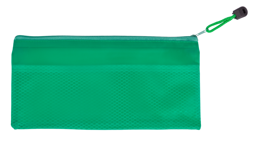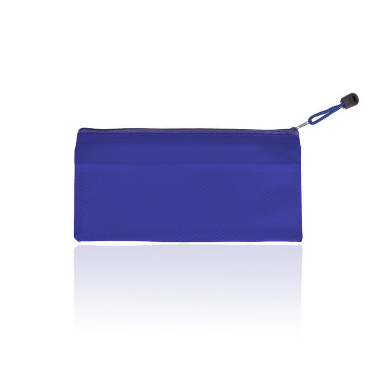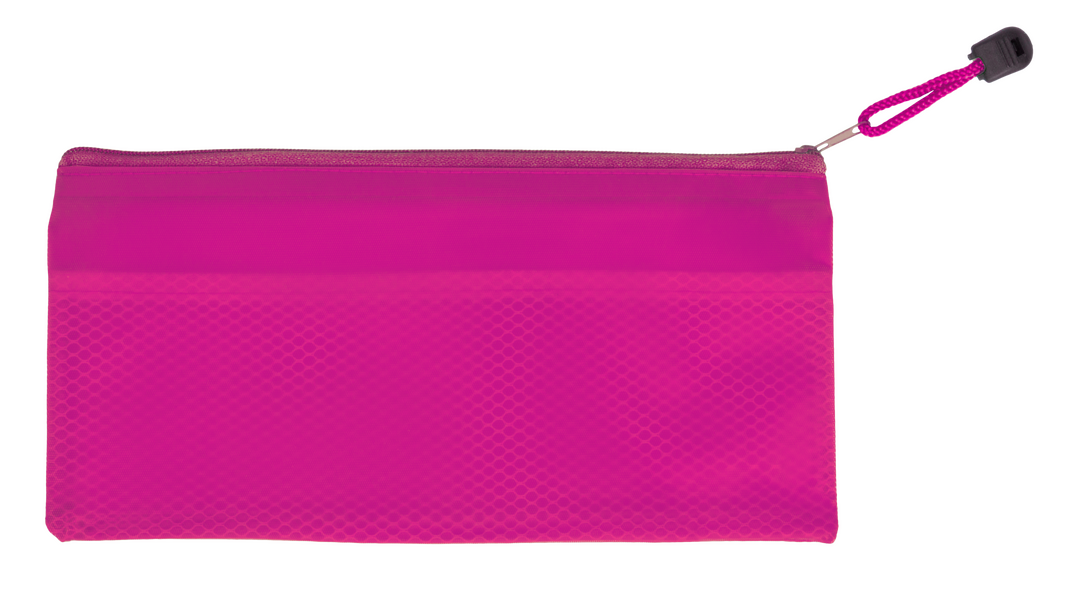 Estuche de cremallera con suave cuerpo acabado en PVC de viva gama de colores. Con cinta a juego en tirador para fácil apertura.