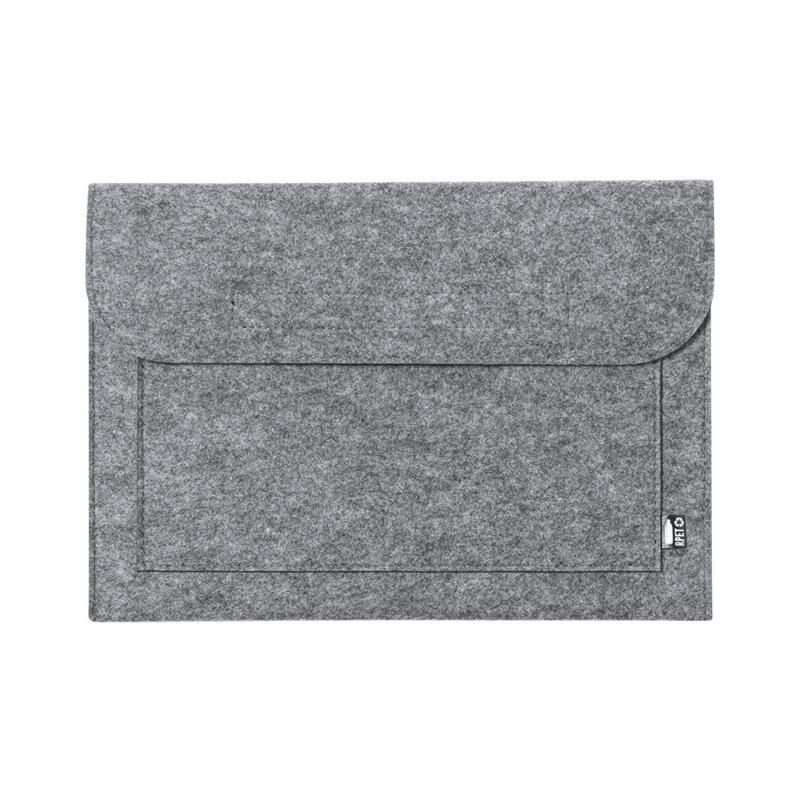 Funda para ordenador portátil de línea nature y en resistente fieltro RPET reciclado, fruto de la combinación del proceso de reciclaje de materiales plásticos junto con la técnica milenaria de fabricación del fieltro, dando como resultado un material de eco-tendencia que, además de ser de origen reciclado, también se convierte en reciclable. Solapa con cierres de velcro y bolsillo frontal, con distintivo RPET en etiqueta exterior.