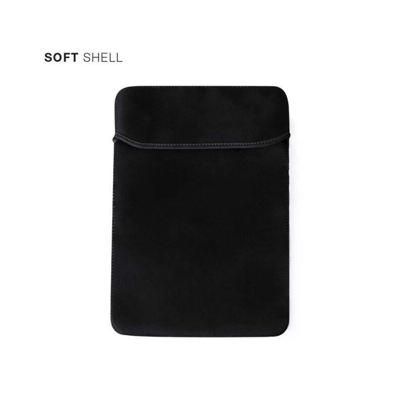 Práctica funda de tablet fabricada en soft shell. Capacidad para una tablet máximo de 10 pulgadas en color negro.