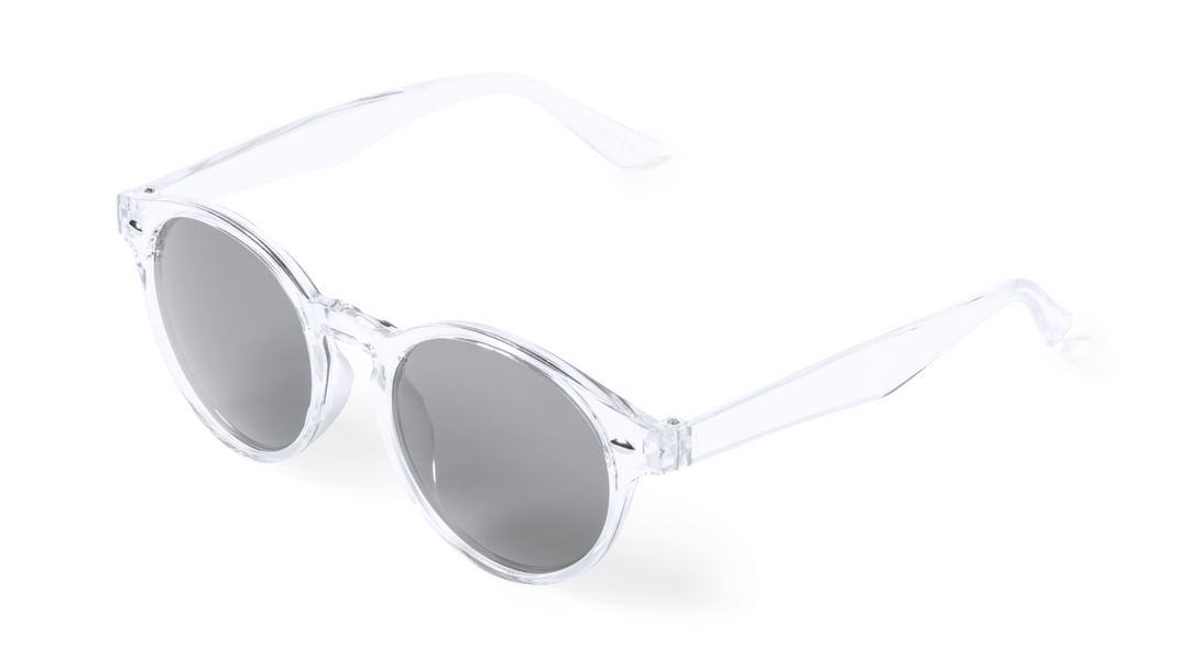 Gafas de sol unisex con protección UV400 de clásico diseño circular. Con montura de diseño en variados colores y lentes en color negro.