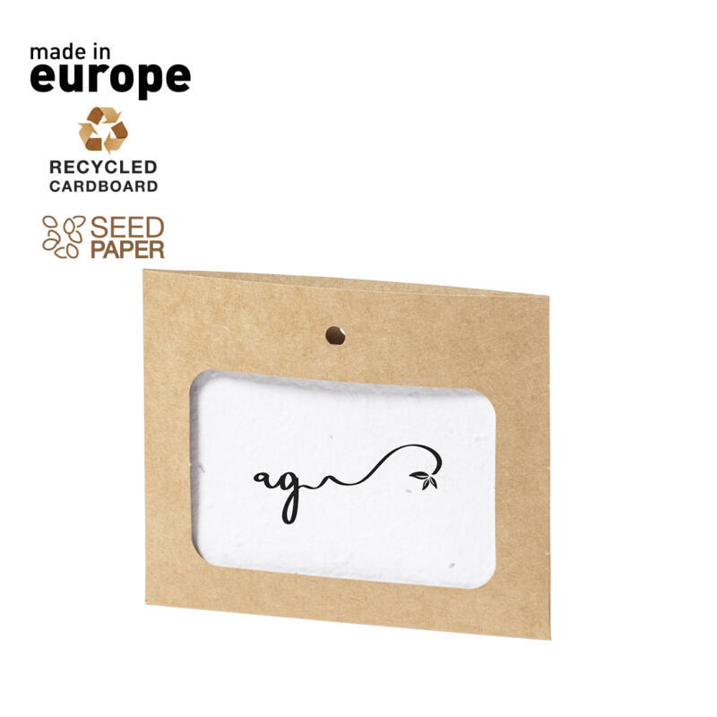 Identificador en cartón reciclado. Incluye tarjeta con semillas de flores silvestres, convirtiéndolo así en papel plantable al final de su vida útil. Flores silvestres en colores surtidos, con instrucciones de plantado en el interior y distintivo Made in Europe.