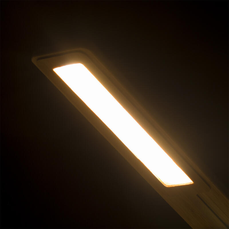 Lámpara cargador plegable de línea nature. Fabricada en bambú procedente de cortes naturales y con base antideslizante. Cargador inalámbrico 10W integrado. Incluye 25 LEDs y 3 posiciones de iluminación (cálida, fría y media) e intensidad regulable. Incluye temporizador de 1H y 2H para la luz y una salida USB. Compatible con dispositivos móviles de carga inalámbrica, con cable cargador tipo C y viene presentada en una atractiva caja de diseño eco. Disponible manual de instrucciones en español e inglés.
