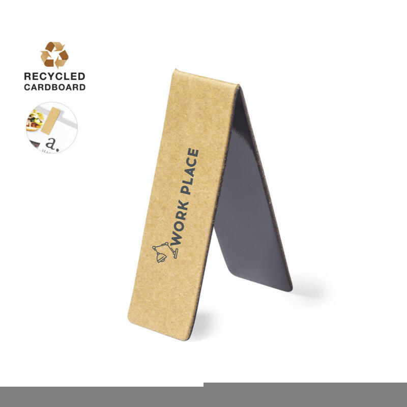 Marcapáginas de línea nature magnético. Fabricado en cartón reciclado, con amplia superficie de marcaje.