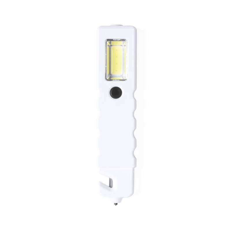 Martillo de emergencia 3 en 1 con linterna led y 4 luces COB con 3 modos de iluminación. Con superficie imantada y cuchilla corta cinturones.