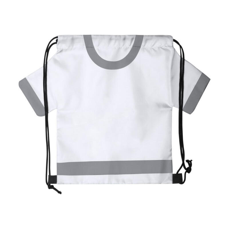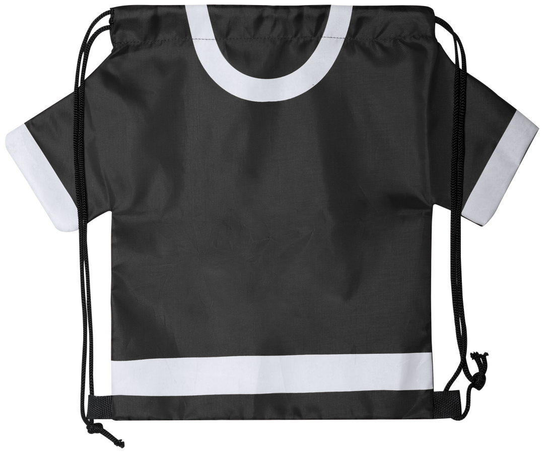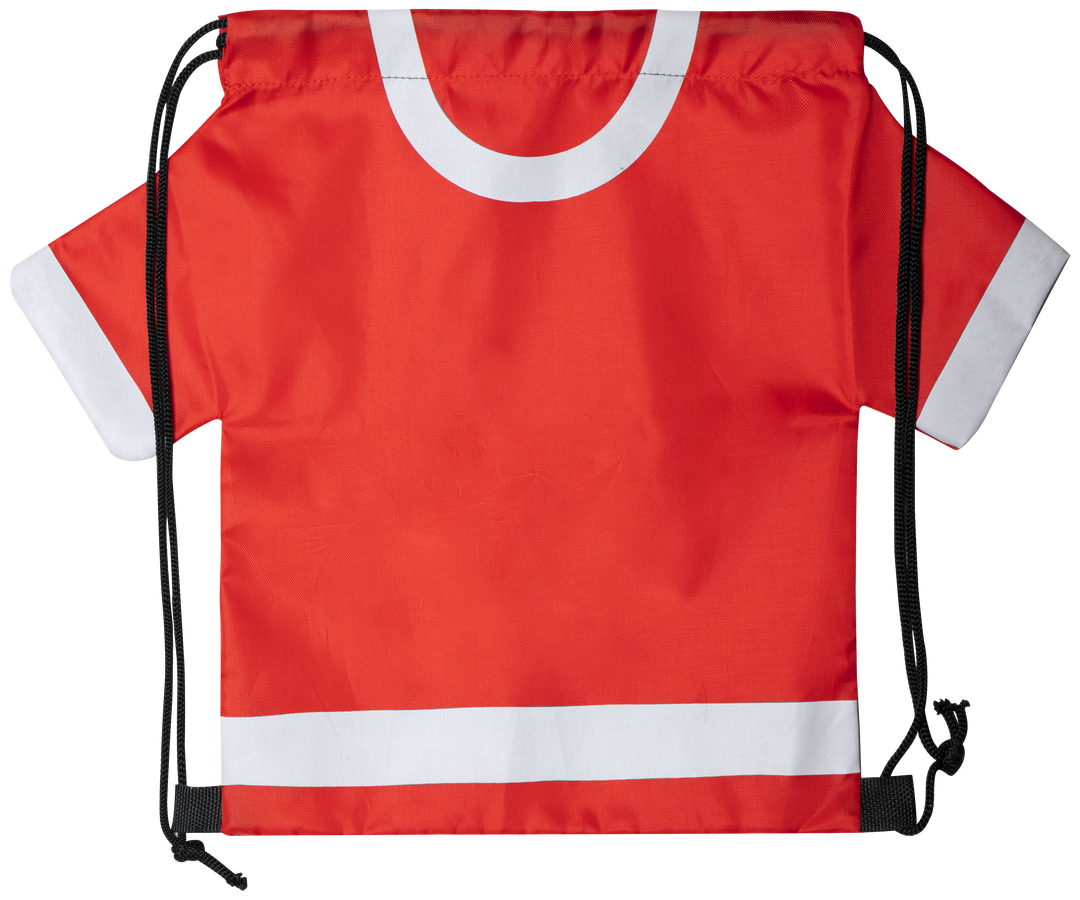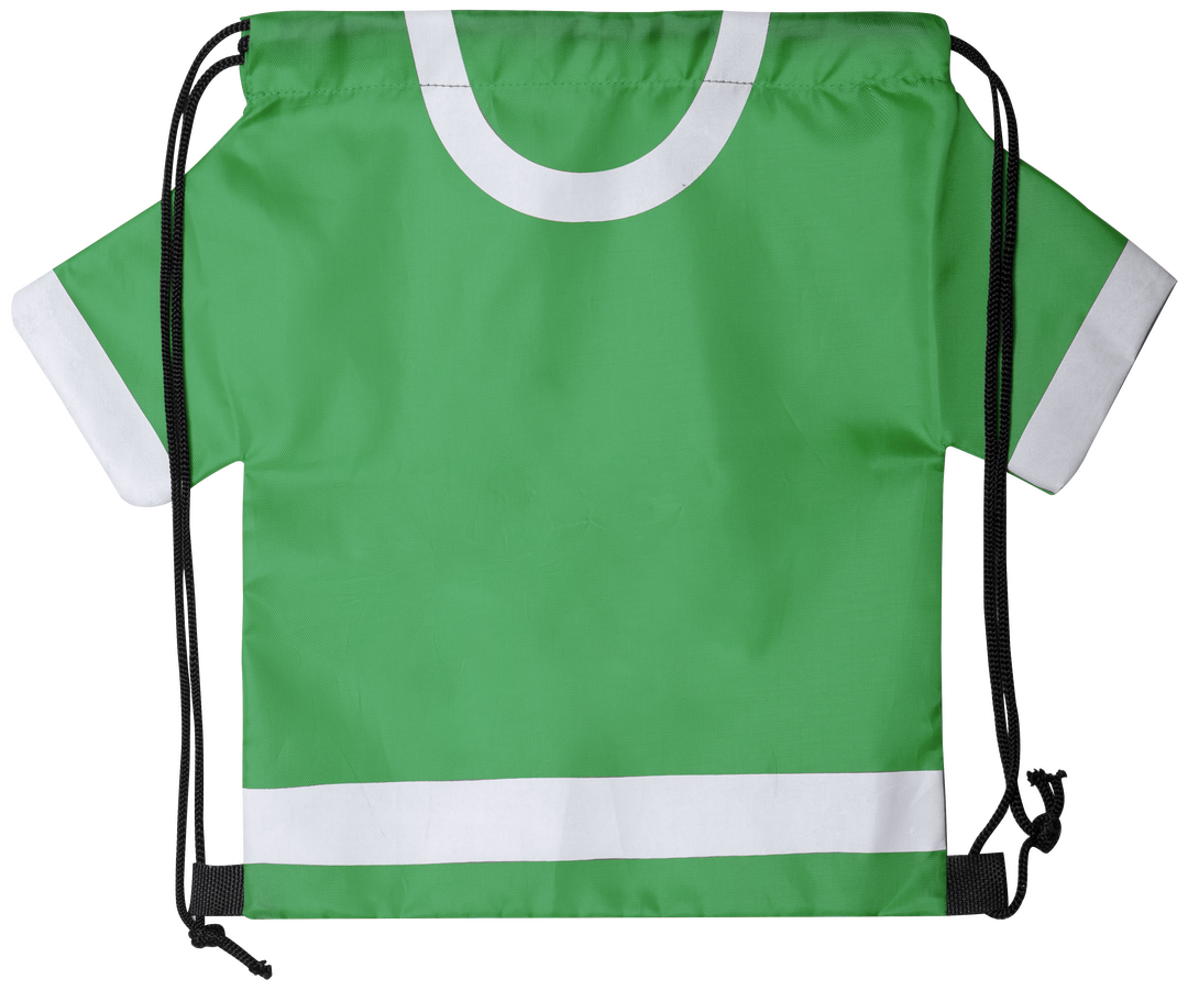 Original y divertida mochila de cuerdas para adulto en forma de camiseta. En suave poliéster 210D, con cuerdas autocierre en color negro y esquinas reforzadas. disponible en variada gama de colores intensos.