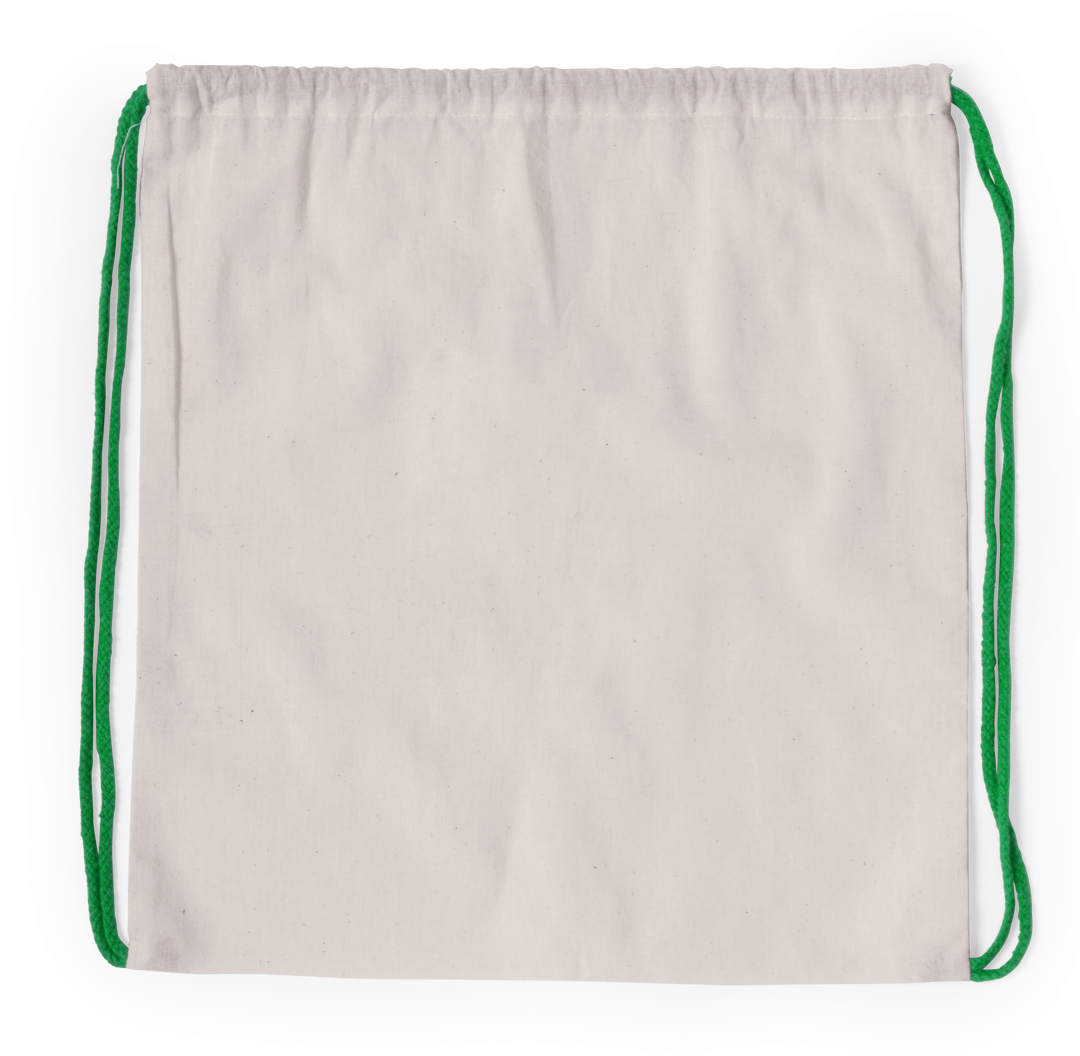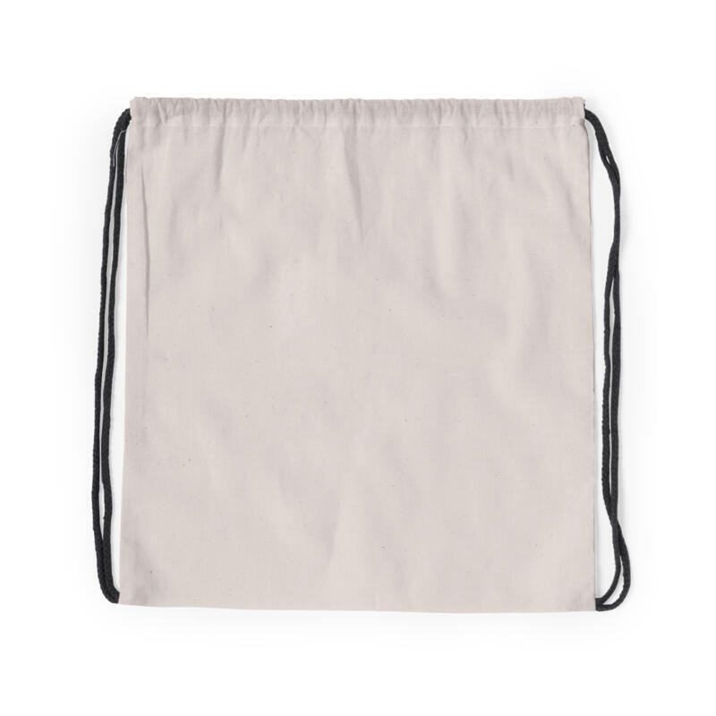 Mochila de cuerdas en línea nature fabricada en algodón 100% de 120g/m2. Cuerpo en color crudo natural y cordones trenzados en variada gama de colores. Esquinas reforzadas.
