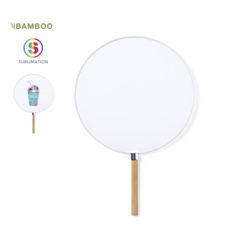 Elegante Pai Pai fabricado en resistente poliéster especial para sublimación. Con mango en bambú y detalle en cromado.