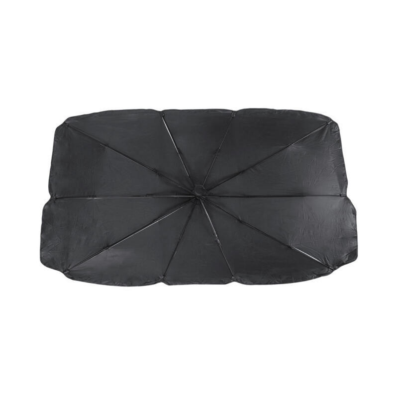 Parasol plegable para coche. Medida de 140x78cm. Con mecanismo de apertura manual y funda de políester incluida
