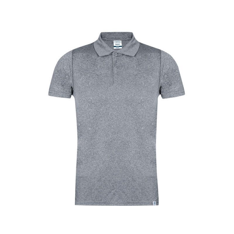 Polo técnico manga corta unisex. Confeccionado en tejido de poliéster 100% reciclado y color con efecto melange. Su gramaje de 150g/m2 hacen que sea una prenda ligera ideal para la práctica de deporte y el día a dia. Tacto muy suave y corte moderno. Tapeta de dos botones al tono. Tejido transpirable de fácil lavado y rápido secado. Doble costura en dobladillo y mangas para una mayor durabilidad y resistencia al uso intensivo. Etiqueta fácilmente removible. Con etiqueta exterior RPET, indicativa de producto de origen reciclado. Disponible en tallas XS, S, M, L, XL y XXL.