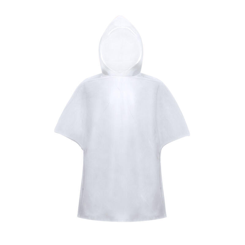 Poncho de HDPE en vivos colores y acabado termosellado. Presentado en bolsa individual transparente. Talla única para adulto en medidas 127x102cm.