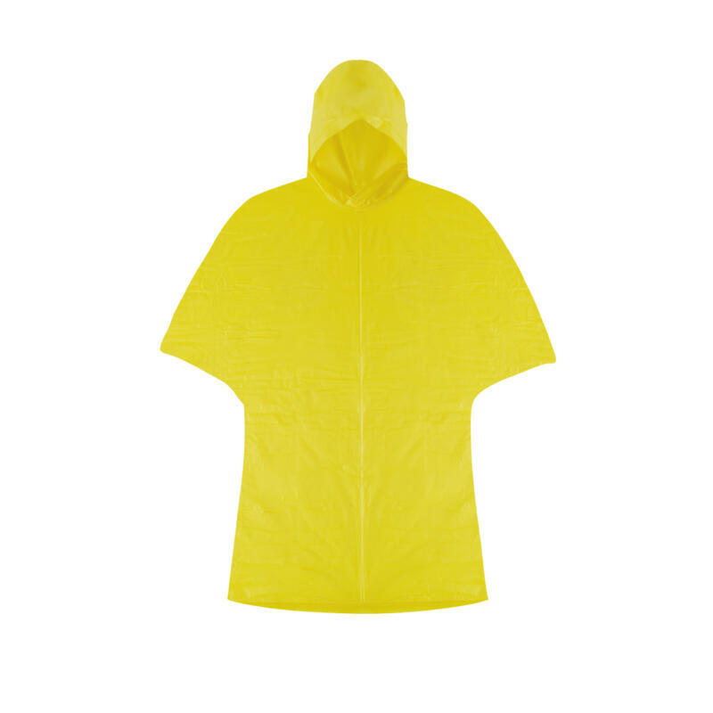 Poncho en resistente PEVA de acabado termo sellado en variada gama de colores. Con cierres laterales de corchete y presentado en bolsa individual a juego con parte superior en redecilla y cordón con accesorio de ajuste. Talla única para adulto.