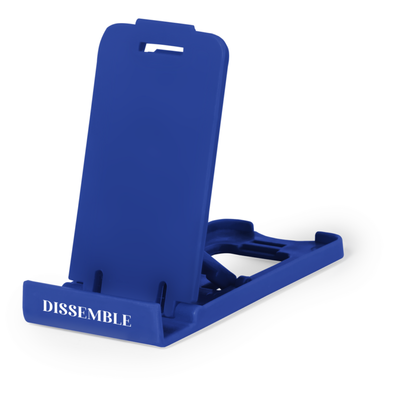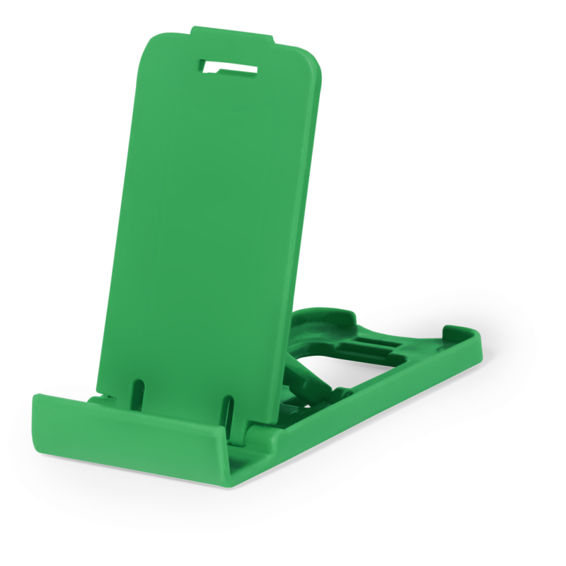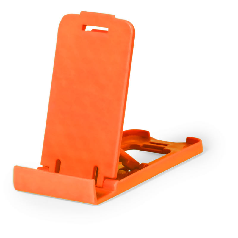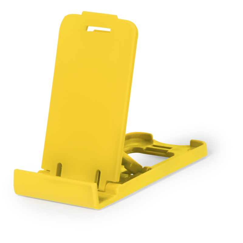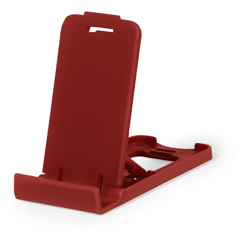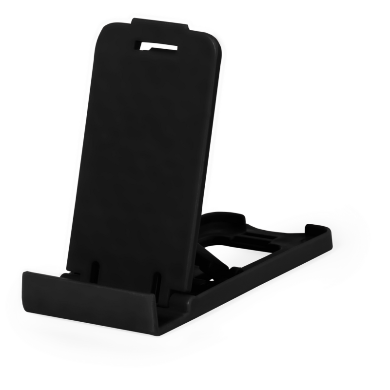 Soporte para smartphone y tablet fabricado en resistente PP. De diseño compacto y plegable para poder llevarlo a cualquier lado. Con distintas posiciones de inclinación. Disponible en amplia gama de colores. Presentado en bolsa individual reciclada.