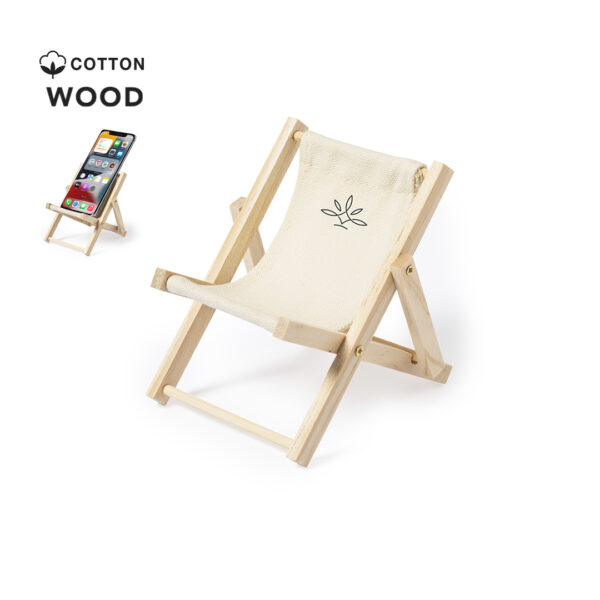 Original soporte para smartphone plegable, con estructura fabricada en madera y tela en 100% algodón de acabado natural.