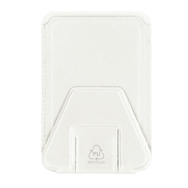 Funda tarjetero en PU Reciclado. Con soporte multifuncional que permite diversas posiciones. Con sistema de fijación adhesiva. Incluye distintivo PU reciclado.La PU Reciclado destaca por su resistencia y elasticidad. Este material reciclado y reciclable es una opción sostenible que rescata las fibras desechadas en los procesos de fabricación, minimizando así el desperdicio de material y contribuyendo a su vez a reducir el impacto ambiental, manteniendo a la vez sus propiedades originales.
