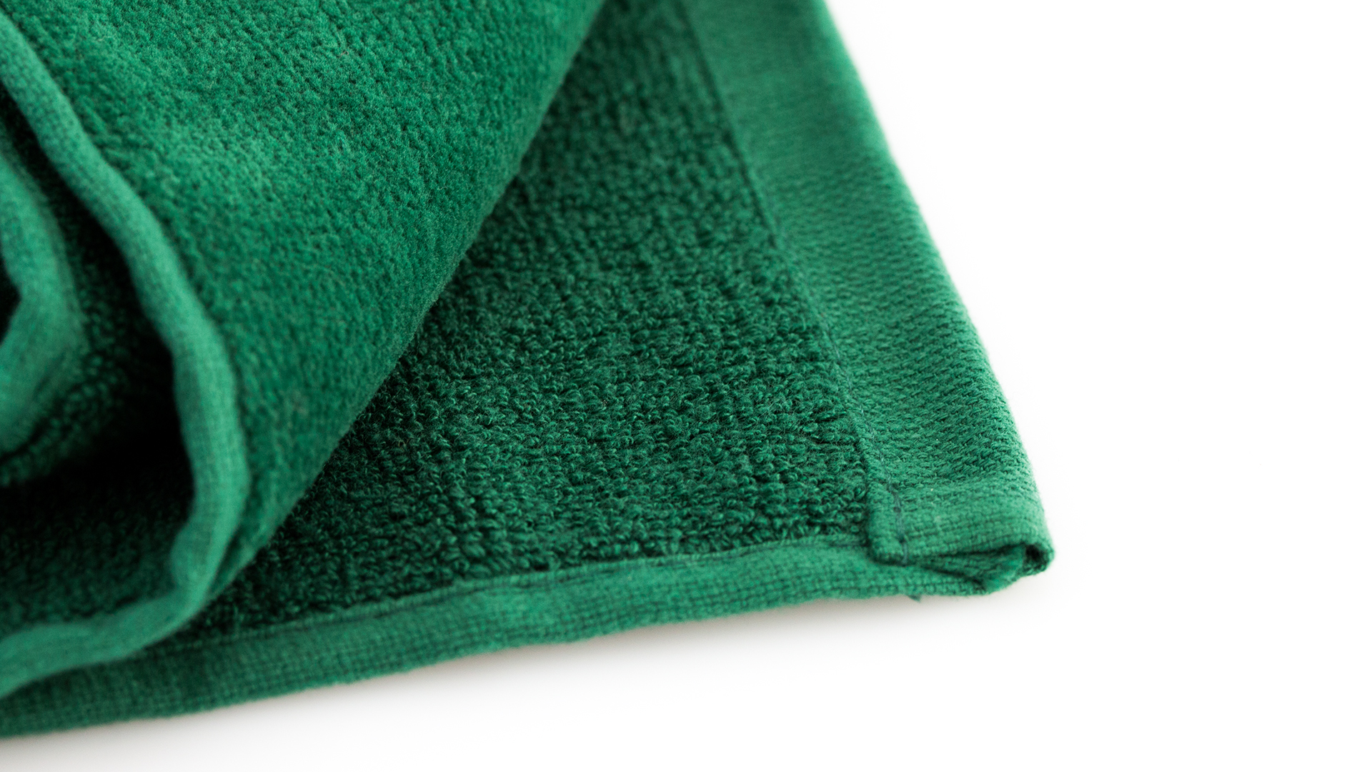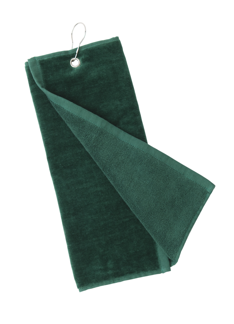 Toalla de golf de 40x50cm en absorbente y suave algodón de alta calidad de 650g/m2. Con argolla reforzada y mosquetón de acople, ambos de acero inox.