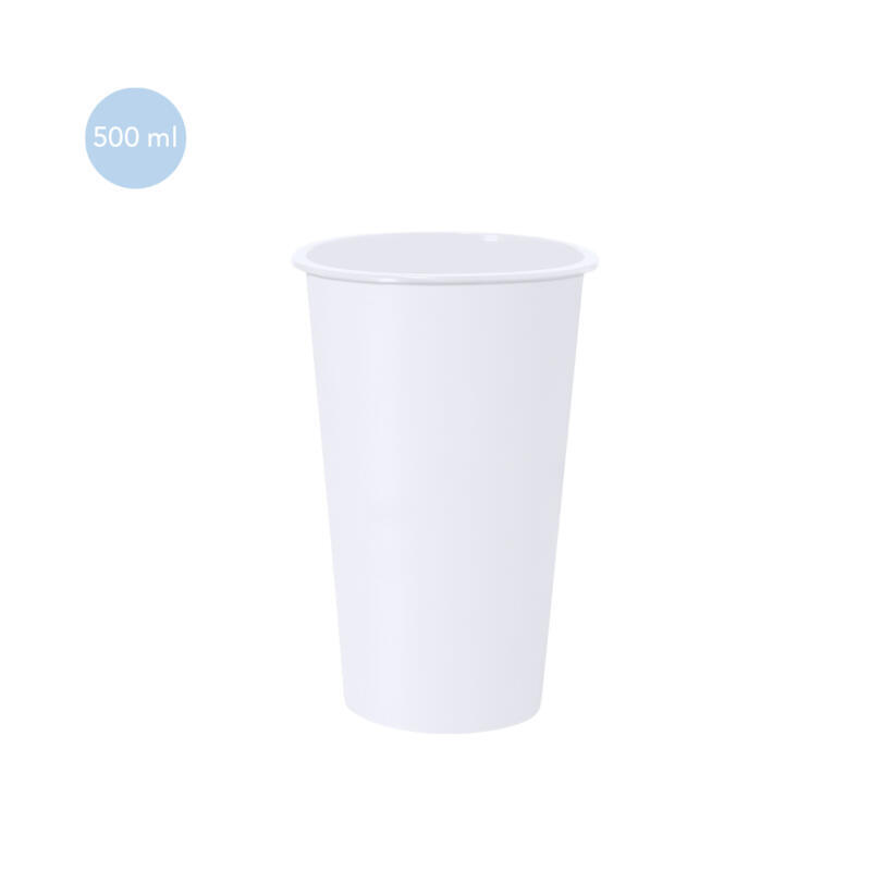 Vaso de 550 ml de capacidad en material PP. Color transparente en acabado frosted. Color blanco y negro en acabado solido.