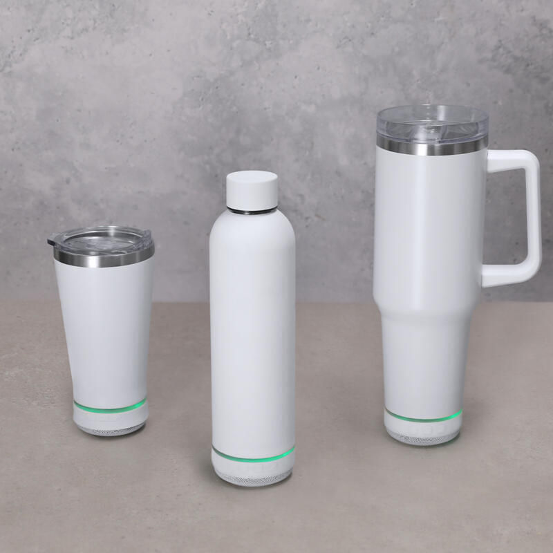 Vaso Térmico con Altavoz Bluetooth 5.3 de 3W integrado. Con 440 ml de capacidad y fabricado en acero inoxidable de doble pared, asegurando una durabilidad máxima y un excelente mantenimiento de la temperatura de las bebidas, ya sean frías o calientes. Es ideal para tener en tu escritorio, mesa o en cualquier superficie donde disfrutar tranquilamente de tu bebida favorita. Con dosificador en tapadera y abre fácil, libre de BPA. Cuenta con base antideslizante a juego, que proporciona una mayor estabilidad. El altavoz Bluetooth integrado en la base del vaso es fácilmente extraíble gracias a su sistema de rosca, e incluye iluminación inteligente LED RGB, que se sincroniza al ritmo de la música, creando una experiencia visual y auditiva única. Además, la función manos libres permite atender llamadas sin necesidad de dejar lo que se está haciendo.